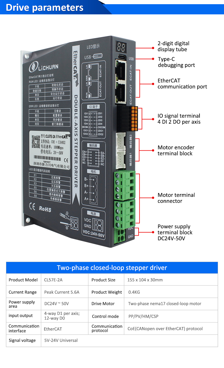 EtherCAT 2Phase Nema24 4-Axis DC Closed Loop Stepper Drivers MotorsΝέα προϊόντα EtherCAT 2Phase Nema17 2-Axis DC Closed Loop Stepper Drivers Motors Kit κατασκευασμένο στην Κίνα με CE/ROHS από την LICHUAN®. Το εργοστάσιό μας είναι ένας διάσημος κατασκευαστής και προμηθευτής EtherCAT 2Phase Nema17 2-Axis DC Closed Loop Stepper Drivers Kit στην Κίνα. Το προϊόν μας είναι υψηλής ποιότητας/ανθεκτικής/σταθερής λειτουργίας και φθηνή τιμή. Και παρέχουμε εξατομικευμένες υπηρεσίες.