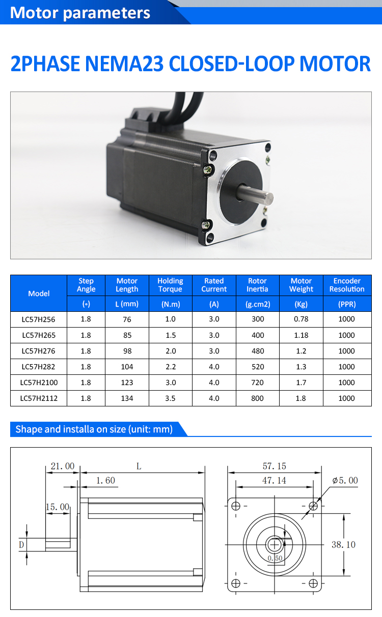 EtherCAT 2Phase Nema24 4-Axis DC Closed Loop Stepper Drivers MotorsΝέα προϊόντα EtherCAT 2Phase Nema23 2-Axis DC Closed Loop Stepper Drivers Motors Kit κατασκευασμένο στην Κίνα με CE/ROHS από την LICHUAN®. Το εργοστάσιό μας είναι ένας διάσημος κατασκευαστής και προμηθευτής EtherCAT 2Phase Nema23 2-Axis DC Closed Loop Stepper Drivers Kit στην Κίνα. Το προϊόν μας είναι υψηλής ποιότητας/ανθεκτικής/σταθερής λειτουργίας και φθηνή τιμή. Και παρέχουμε εξατομικευμένες υπηρεσίες.
