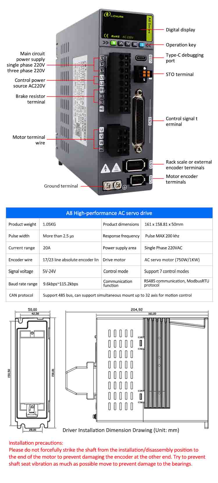 Κιτ οδηγών σερβοκινητήρα υψηλής ακρίβειας Lichuan A8 STO ABZ AC — Επισκόπηση προϊόντος