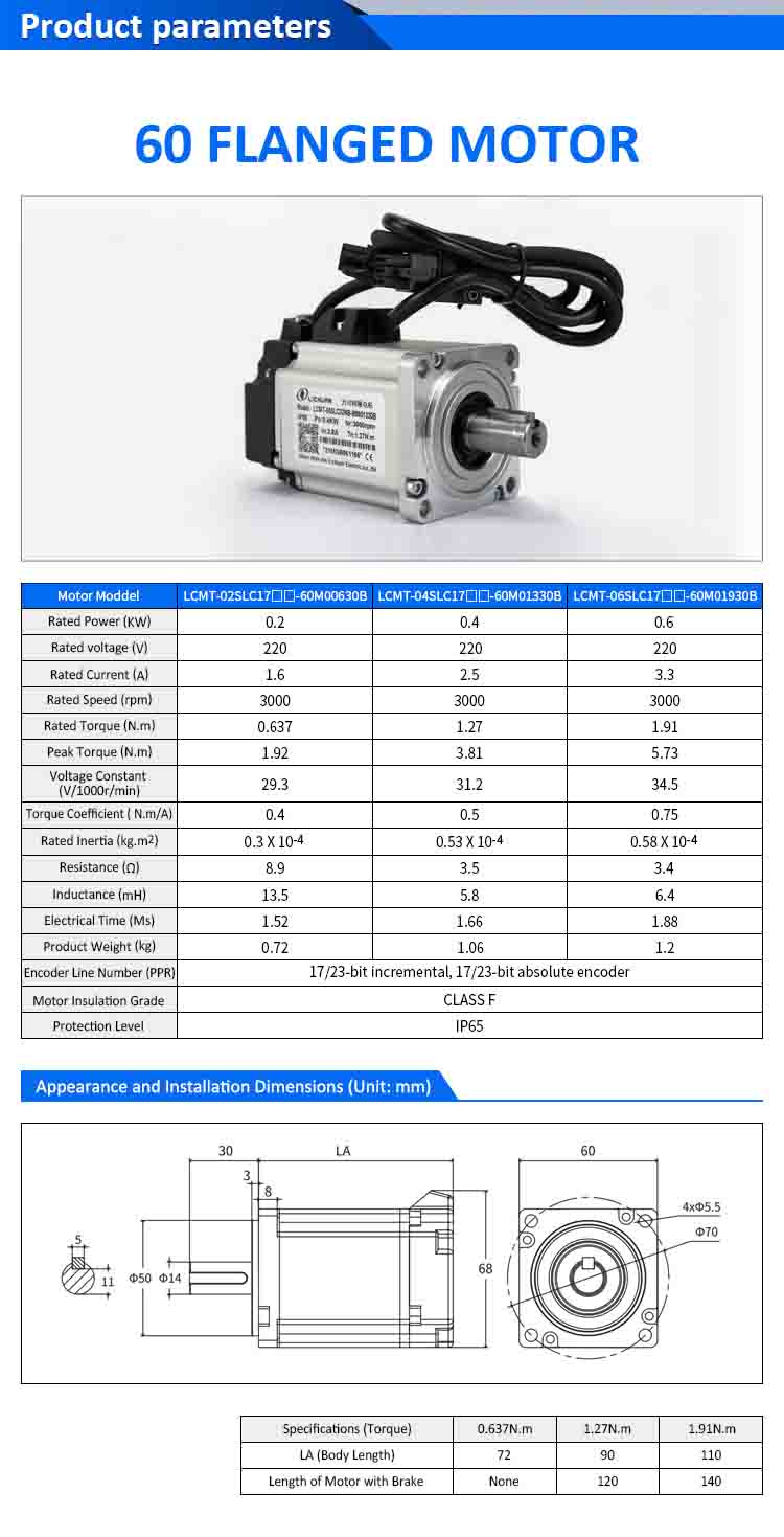 | Μοντέλο κινητήρα | LCMT-02SLC17-60M00630B | LCMT-04SLC17-60M01330B | LCMT-06SLC17-60M01930B |