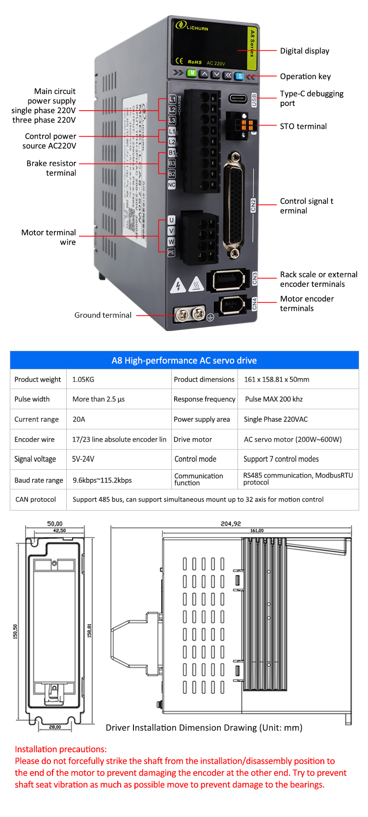 Νέα προϊόντα Pulse/RS485 200W/400W/600W 2500/3000RPM Αύξηση 17/23 bit/Absolute Encoder A8 Υψηλής ακρίβειας STO ABZ AC Servo Motor Drivers Kit κατασκευασμένο στην Κίνα με CE/ROHS από την LICHUAN®. Το εργοστάσιό μας είναι ένας διάσημος κατασκευαστής και προμηθευτής του κιτ οδηγών σερβοκινητήρων Pulse/RS485 200W/400W/600W 2500/3000RPM A8 υψηλής ακρίβειας STO ABZ AC στην Κίνα. Το προϊόν μας είναι υψηλής ποιότητας/ανθεκτικής/σταθερής λειτουργίας και φθηνή τιμή. Και παρέχουμε εξατομικευμένες υπηρεσίες.